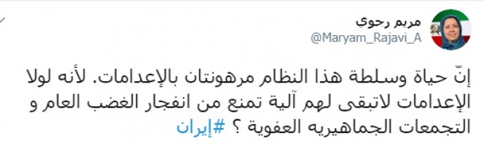 وكتب عبر تغريدة له على "تويتر" رصدها " المشهد العربي": "إنّ حياة وسلطة هذا النظام مرهونتان بالإعدامات، لأنه لولا الإعدامات لا تبقى لهم آلية تمنع من انفجار الغضب العام و التجمعات الجماهيرية العفوية".
