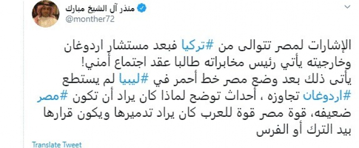 منذر آل الشيخ: أردوغان لم يتجاوز الخطوط الحمراء.. وقوة مصر قوة للعرب