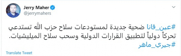 طالب الكاتب الصحفي اللبناني جيري ماهر، اليوم، المجتمع الدولي بالتحرك لسحب سلاح حزب الله اللبناني.