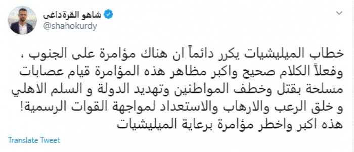 كشف الكاتب الصحفي العراقي شاهو القرةداغي، اليوم، تفاصيل مُخطط المليشيات الموالية لإيران في العراق.