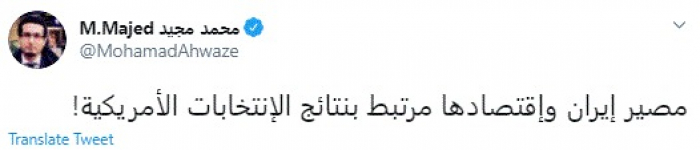 وكتب في تغريدة عبر "تويتر" رصدها "المشهد العربي": "مصير إيران واقتصادها مرتبط بنتائج الانتخابات الأمريكية".