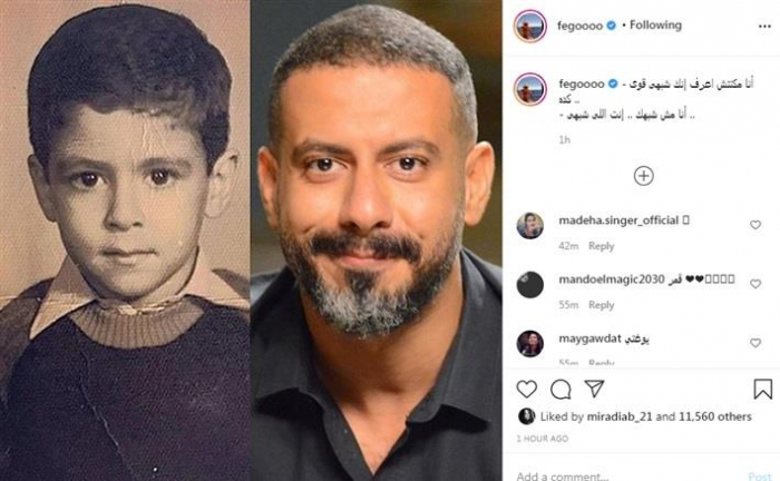شارك الفنان محمد فراج في تحدي صور الطفولة، ونشر صورة جديدة له مع صورة من طفولته.