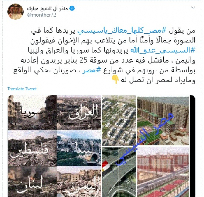 كشف المدون السعودي البارز منذر آل الشيخ مبارك، اليوم، مُخطط دول الشر لهدم استقرار مصر.