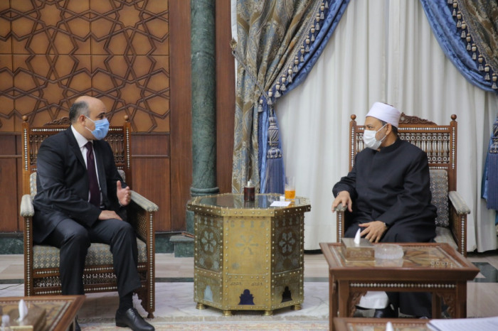 استقبل الإمام الأكبر أ.د أحمد الطيب، شيخ الأزهر الشريف، صباح اليوم بمشيخة الأزهر، السفير حاتم عبدالقادر، سفير مصر الجديد في هولندا.