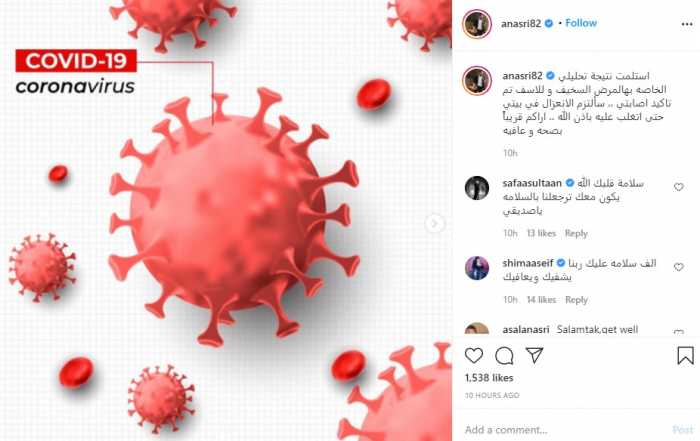 أعلن أنس نصري شقيق الفنانة السورية أصالة ومدير أعمالها إصابته بفيروس كورونا المستجد.