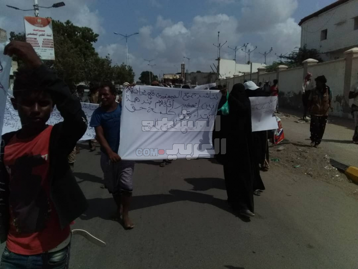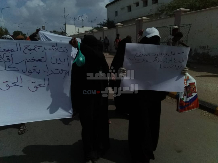 عمال النظافة بأبين يحتجون لزيادة رواتبهم (صور)