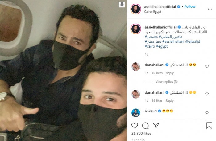 ونشر الحلاني، صورة له من داخل الطائرة عبر حسابه على إنستجرام، وظهر مرتديا الكمامة، وعلق: "إلى القاهرة بإذن الله للمشاركة باحتفالات نصر أكتوبر المجيد".