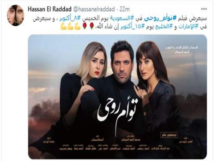 أعلن الفنان حسن الرداد، مواعيد عرض فيلمه السينمائي "توأم روحي" بالسعودية والإمارات.