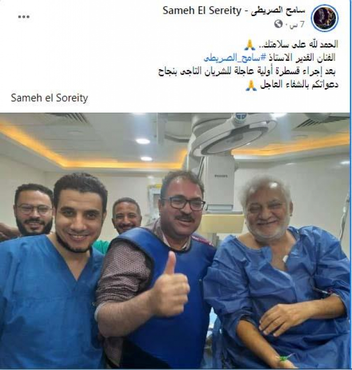 أجرى الفنان المصري سامح الصريطي قسطرة أولية عاجلة للشريان التاجي، بإحدى المستشفيات.