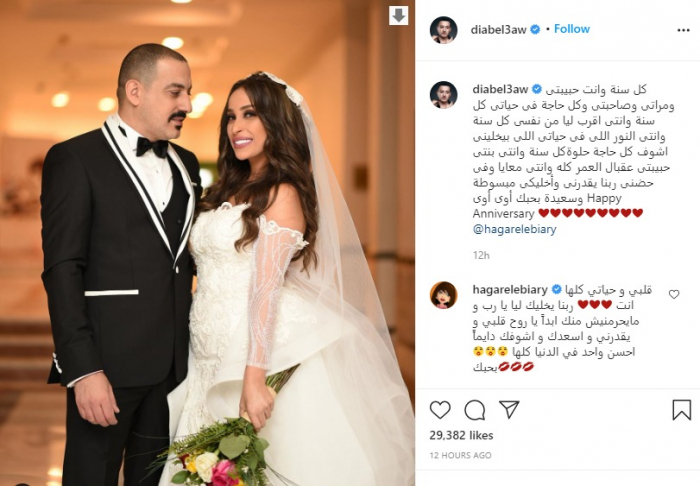 وعلق "دياب"، على الصورة قائلًا: "كل سنة وانتي حبيبتي ومراتي وصاحبتي وكل حاجة في حياتي كل سنة وإنتي أقرب ليا من نفسي، كل سنة وإنتي النور اللي في حياتي اللي بيخلينى أشوف كل حاجة حلوة كل سنة وانتي بنتي حبيبتي عقبال العمر كله وانتي معايا وفي حضنى، ربنا يقدرنى وأخليكي مبسوطة وسعيدة بحبك أوي أوي".