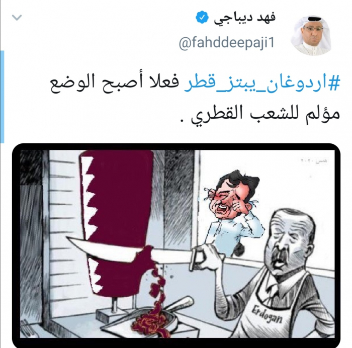 وقال ديباجي في تغريدة له عبر حسابه بتويتر ورصدها "المشهد العربي": #اردوغان_يبتز_قطر فعلا أصبح الوضع مؤلم للشعب القطري".