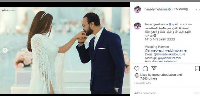 ونشرت "هنادي" صور جديدة تجمعها بزوجها، عبر حسابها على إنستجرام، وعلقت: "تمت بحمد الله، والحمد لله الذي تتم بنعمته الصالحات .. اللهم بارك لنا وبارك علينا وأجمع بيننا في خير".