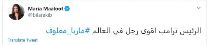 وقالت في تغريدة عبر "تويتر" رصدها "المشهد العربي": "الرئيس ترامب أقوى رجل في العالم".