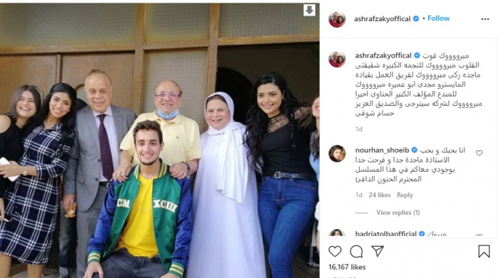 ونشر "زكي" عبر حسابه الرسمي بموقع إنستجرام، صورة من كواليس العمل، وعلق: "مبروك قوت القلوب، مبروك للنجمة الكبيرة شقيقتى ماجدة زكي، مبروك لفريق العمل بقيادة المايسترو مجدى أبو عميرة".