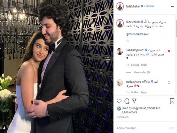 ونشر فضل" صورة نجله مع زوجته، عبر حسابه على إنستجرام، وعلق: "مبروك حبيب بابا .. الله يسعد قلبك، ويرزقك بالذرية الصالحة".