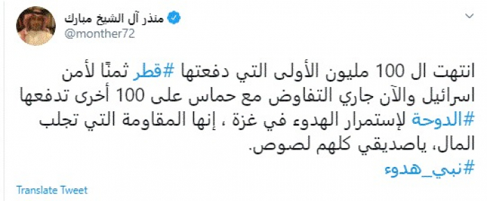 كشف المدون السعودي البارز منذر آل الشيخ مبارك، اليوم، تفاصيل جديدة عن تمويل قطر لحركة حماس.
