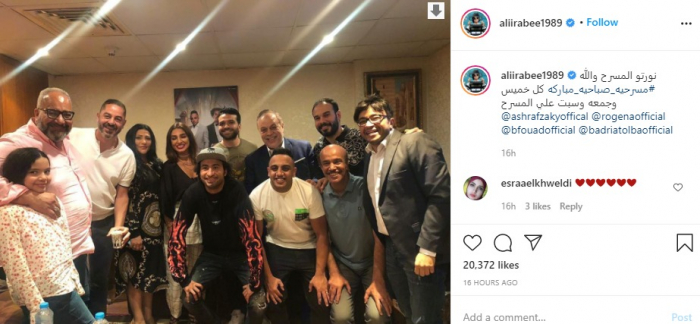وحضر العرض المسرحي الفنان أشرف زكي وزوجته الفنانة روجينا والفنانة بدرية طُلبة، وعلق "نورتوا المسرح والله، مسرحية صباحية مباركة كل خميس وجمعة وسبت على المسرح".
