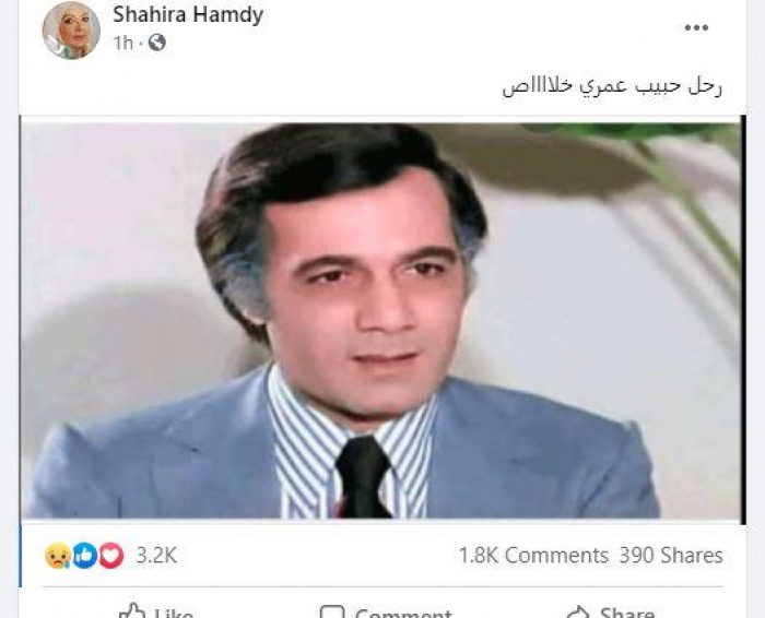 ونشرت شهيرة، صورة لمحمود ياسين عبر حسابها على موقع التواصل الاجتماعي "فيسبوك"، وكتبت: "رحل حبيب عمري خلاص".