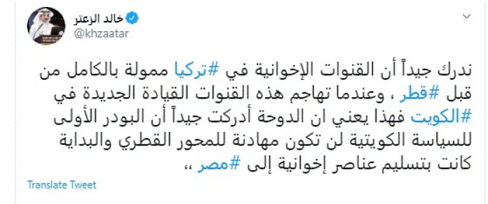 الزعتر ينتقد قنوات الإخوان بسبب القيادة الجديد بالكويت