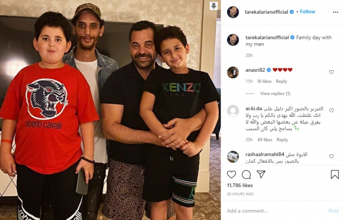 صورة طارق العريان رفقة الطفلين تأتي بعد أيام من نشر خالد الذهبي ابن الفنانة السورية أصالة، رسالة جاء فيها: "أخبرني.. هل تقضي وقت كاف مع عائلتك؟ الرجل الذي لا يقضي الوقت مع عائلته لا يمكن أبدا أن يكون رجلا حقيقيا".