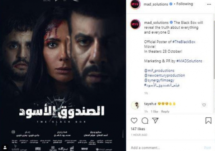 ونشرت شركة "ماد سيليوشن"، بوستر الفيلم عبر حسابها الرسمي على إنستجرام، وعلقت:"الصندوق الأسود" في دور العرض 28 أكتوبر ".
