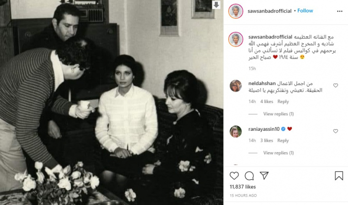 جمعتها الصورة التي التقطت في كواليس فيلم "لا تسألني من أنا"، بالفنانة شادية والمخرج أشرف فهمي، وعلقت سوسن "مع الفنانة العظيمة شادية والمخرج العظيم أشرف فهمي، الله يرحمهم في كواليس فيلم لا تسألني من أنا، سنة ١٩٨٤.. صباح الخير".