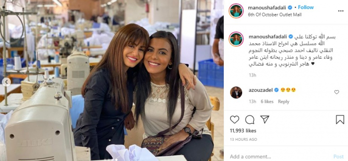وكتبت منة في تعليقها على الصور :"بسم الله توكلنا على الله مسلسل هي، إخراج الأستاذ محمد النقلي، تأليف أحمد صبحي، بطولة النجوم وفاء عامر، دينا، منذر ريحانة، أيتن عامر، هاجر الشرنوبي، منة فضالي".
