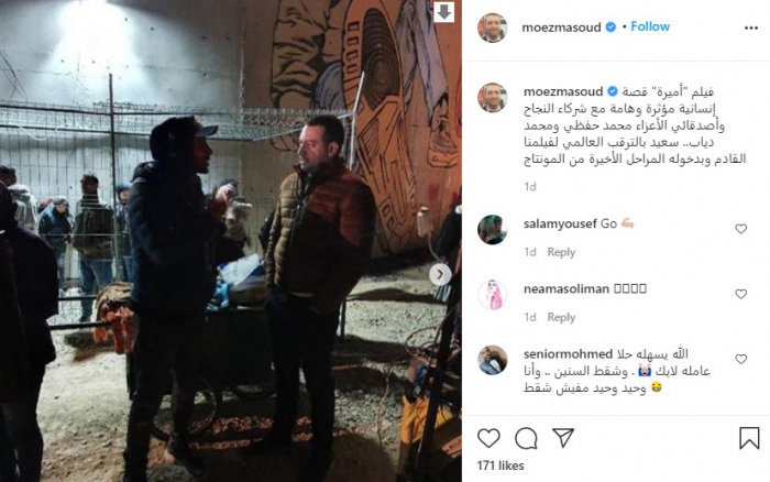 ونشر "مسعود"، عدة صور له مع حفظي من كواليس تصوير العمل، وذلك عبر حسابه على "إنستجرام"، معلقا: "فيلم (أميرة) قصة إنسانية مؤثرة وهامة مع شركاء النجاح وأصدقائي الأعزاء محمد حفظي ومحمد دياب.. سعيد بالترقب العالمي لفيلمنا القادم وبدخوله المراحل الأخيرة من المونتاج".