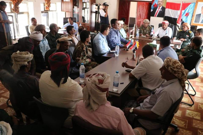شارك في الاجتماع المستشار الأمني لرئيس القيادة المحلية، صالح يسلم ومدير أمن المحافظة العميد أحمد سعد القدومي، والعميد علي عمر كفاين قائد لواء الحزام الأمني.