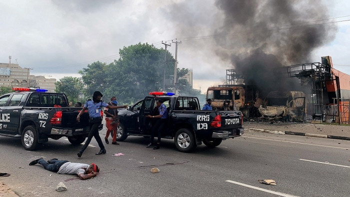 واندلعت احتجاجات غاضبة منذ أسبوعين في جنوب البلاد ضد عنف الشرطة، سرعان ما تحوّلت حركة احتجاج شعبية وتم استبدال اللافتات التي رُفعت ضد "سارس"، في إشارة إلى وحدة الشرطة المتهمة بابتزاز الشعب وتنفيذ توقيفات غير قانونية وعمليات تعذيب وقتل، بأعلام نيجيرية ودعوات لاستقالة الرئيس محمد بخاري.