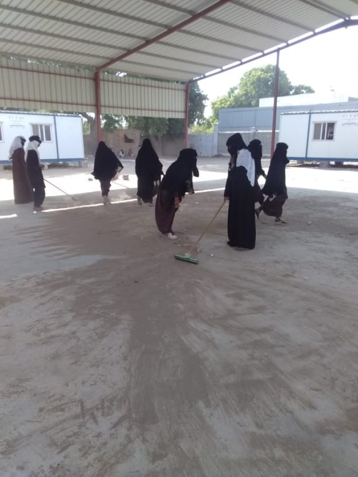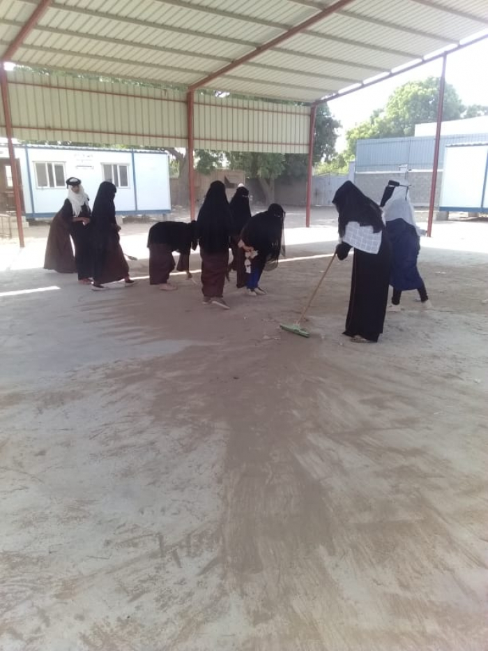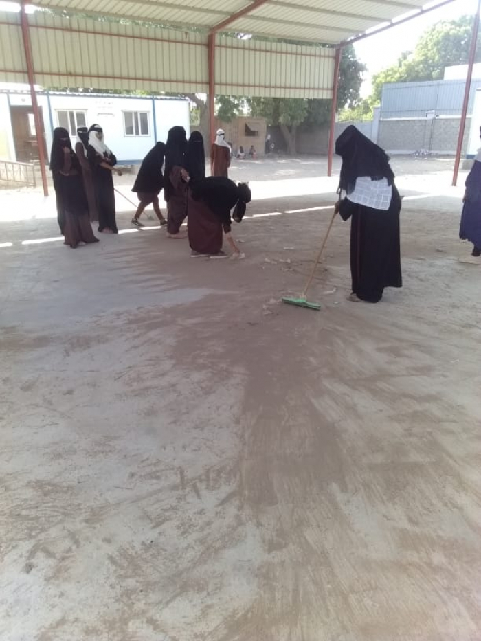 بادرت طالبات مجمع الفتح للبنات في منطقة المسيمير بمحافظة أبين، اليوم الخميس، بإطلاق حملة نظافة في المجمع.