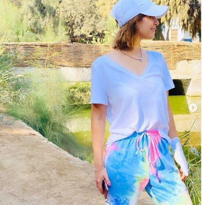 وظهرت "منة"، في الصور بإطلالة مشرقة، وأبرزت الصور تعرضها لإصابة في كف يدها، بعد أيام من بدء تصوير مسلسل "هي".