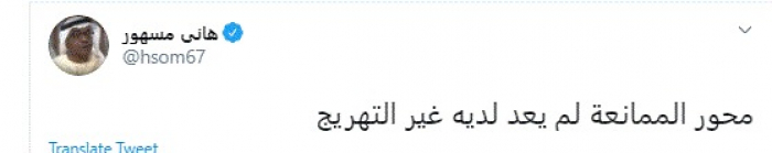 وقال في تغريدة عبر "تويتر" رصدها "المشهد العربي": "محور الممانعة لم يعد لديه غير التهريج".