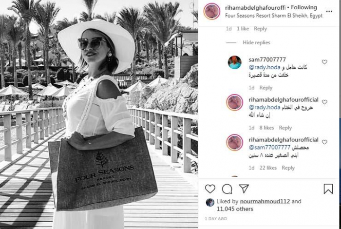 أوضحت الفنانة ريهام عبد الغفور سبب عدم حضورها افتتاح الدورة الرابعة من مهرجان الجونة السينمائي؛ ردا على أحد متابعيها، على "إنستجرام"؛ حيث سألها: "مرحتيش المهرجان ليه السنة دي؟ فقال متابع آخر: "كانت حامل، خلفت من مدة قصيرة".