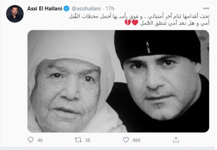 نشر "الحلاني" صورة تجمعهما، عبر حسابه الرسمي بموقع "تويتر"، قائلًا :"تحت أقدامها تنام أخر أمنياتي، وفوق رأسها أجمل محطات القبل، أمي وهل بعد أمي تنطق الجمل".