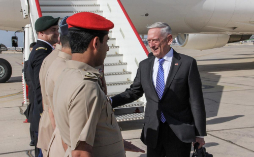 يعقد وزير الدفاع الأمريكي جيم ماتيس، الذي وصل الى سلطنة عُمان اليوم الأحد، اجتماعاً مع السلطان قابوس، لمناقشة القضايا الأمنية الحالية، بما في ذلك الوضع في اليمن.