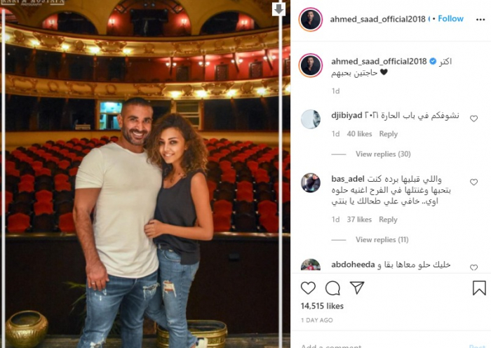 شارك الفنان أحمد سعد جمهوره بصورة تجمعه بخطيبته علياء بسيوني من داخل مسرح أوبرا الإسكندرية، عبر حسابه الرسمي بموقع "إنستجرام".