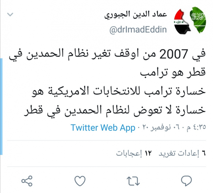 وأوضح أن "خسارة ترامب للانتخابات الأمريكية هو خسارة لا تعوض لنظام الحمدين في قطر".