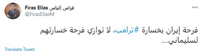 وقال في تغريدة عبر "تويتر" رصدها "المشهد العربي": "فرحة إيران بخسارة ترامب، لا توازي فرحة خسارتهم لسليماني".