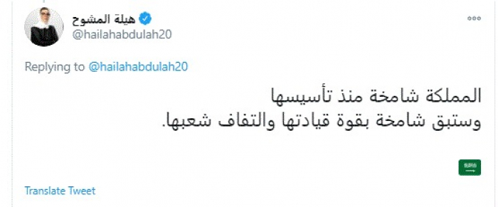 وأضافت: "المملكة شامخة منذ تأسيسها وستبقى شامخة بقوة قيادتها والتفاف شعبها".