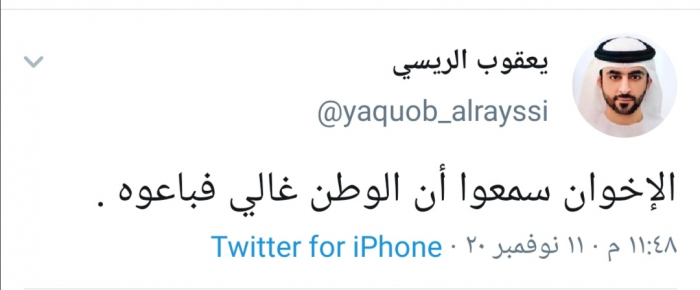 هاجم الكاتب الإماراتي يعقوب الريسي، جماعة الإخوان الإرهابية ووصفهم ببائعي الأوطان بسبب سياسة العنف التي ينتهجوها.