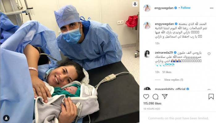 ونشرت إنجي، صورة لها داخل غرفة العمليات، وهي تحمل ابنتها وبجوارها زوجها، وذلك عبر حسابها على إنستجرام، وعلقت: "الحمد لله الذي بنعمته تتم الصالحات.. رزقني الله اليوم بإبنتي نازلي الوتيدي.. بارك الله فيها".