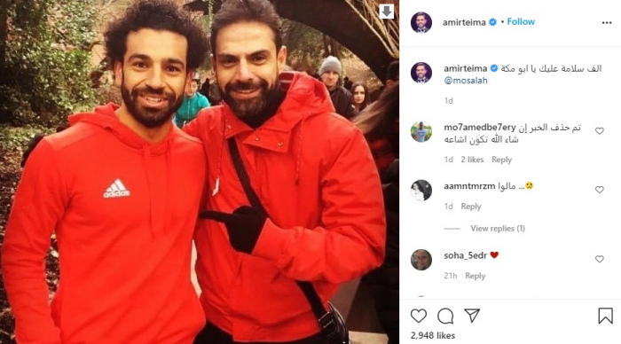 ونشر طعيمة، عبر حسابه على موقع "إنستجرام"، صورة له مع صلاح، وعلّق: "ألف سلامة عليك يا أبو مكة".