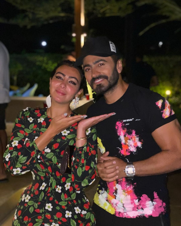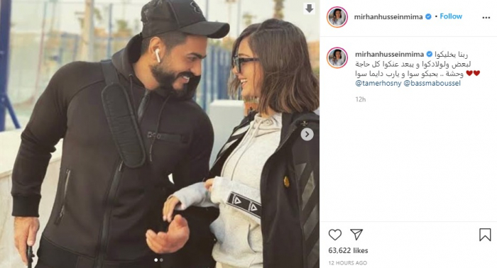 نشرت الفنانة ميريهان حسين صورًا تجمع الفنان تامر حسني بزوجته الفنانة بسمة بوسيل، عبر حسابها الرسمي بموقع "إنستجرام".