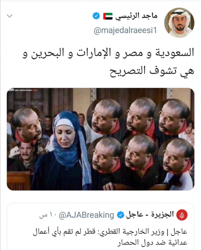 ونشر الرئيسي في تغريدة له عبر حسابه بتويتر ورصدها المشهد العربي، صورة من أحد الأفلام وعلق عليها قائلاً: "السعودية و مصر و الإمارات و البحرين و هي تشوف التصريح".