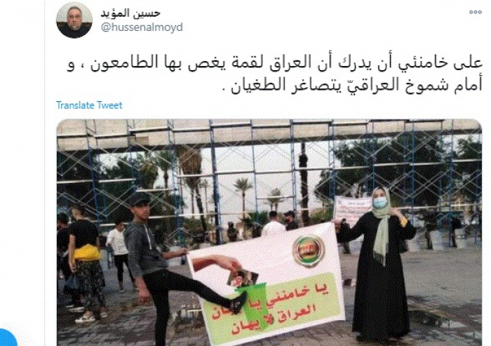 وقال في تغريدة عبر "تويتر" رصدها "المشهد العربي": "على خامنئي أن يدرك أن العراق لقمة يغص بها الطامعون، و أمام شموخ العراقيّ يتصاغر الطغيان".