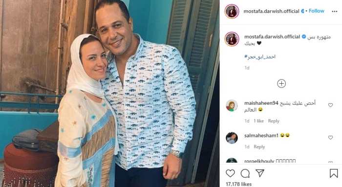 شارك الفنان مصطفى درويش جمهوره ومتابعيه صورة له رفقة الفنانة ريهام عبدالغفور من كواليس حكاية "ربع قيراط" ضمن أحداث مسلسل "إلا أنا".