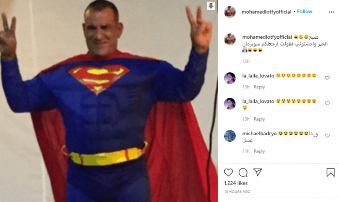ونشر لطفي، صورة له مرتديا فيها ملابس سوبر مان عبر حسابه على إنستجرام، وعلق : "صباح الخير.. وحشتوني، فقولت أرجعلكم سوبر مان".
