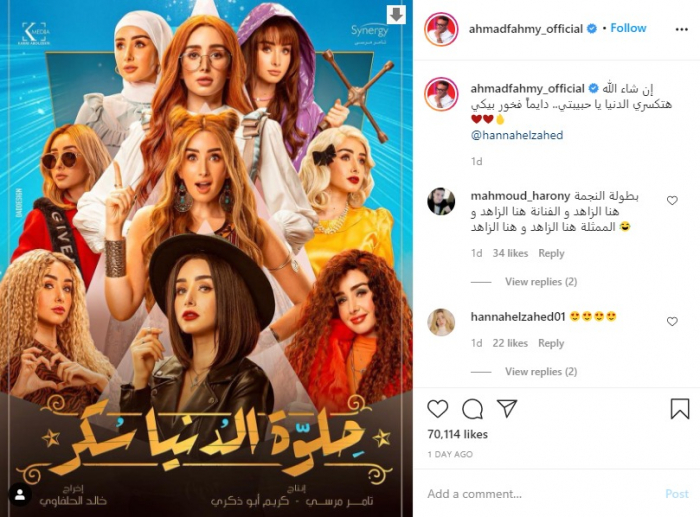 ونشر "فهمي"، عبر حسابه بـ"إنستجرام"، صورة للبوستر وعلق: "إن شاء الله هتكسري الدنيا يا حبيبتي.. دايما فخور بيكي".