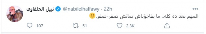 ومازح جمهوره في تويتة أخرى قائلًا :" المهم بعد ده كله.. ما يفاجؤناش بماتش صفر-صفر".